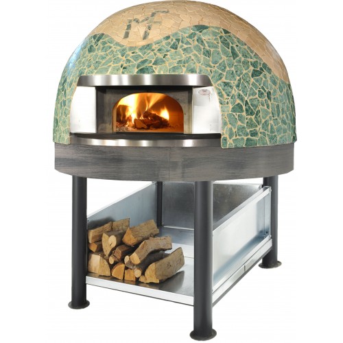 The difference between "L" and "LP" oven ranges is that "LP" ovens are equipped with an ash-drawer and internal fireside cast iron grate. Usually they are positioned on left side but on request it is possible to place it on the right or even on both sides. This cast iron grate optimises the wood fired combustion and makes the inside of the oven healthy because wood fired ashes fall down in to the drawer allowing easy and safe oven surface cleaning operation. Besides this, "LP" ovens can be easily converted to gas fired operated ovens given prearrangement for gas controls and gas burner installation. All ovens come with analogical thermometer, stand and manual door. Cupola finishing is available for both ranges.